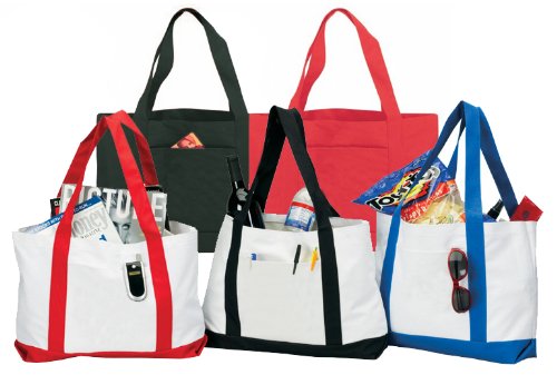 Get your day started off right with a tote that's big enough-and sturdy enough-to carry everything you need to get you through the afternoon. Constructed of heavy-duty polyester with a strong vinyl backing, it's sure to work just as hard as you do. Bag also has a handy open front pocket. Measures 19" W x 12" H x 4-1/2" D with a 22" handle.